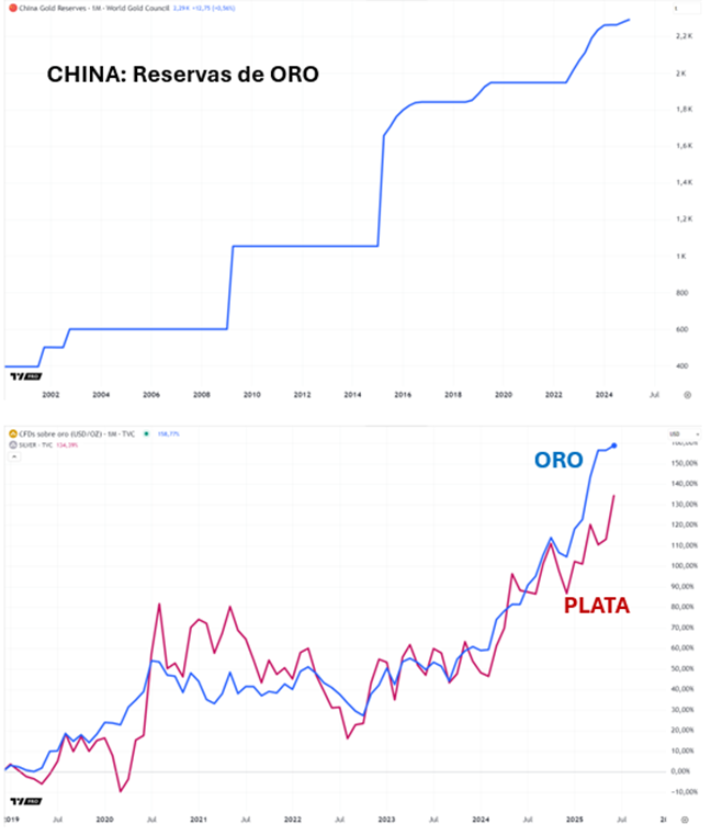 Detrás de este apetito por los metales preciosos se esconde una cuestión clave: ¿está China reduciendo su exposición a los bonos del Tesoro estadounidense para protegerse de una creciente tensión geopolítica y financiera? Todo apunta a que parte del capital que antes se destinaba a deuda soberana estadounidense ahora se está redirigiendo hacia activos físicos, como el oro y la plata, percibidos como reservas estratégicas menos vulnerables a sanciones o restricciones externas.