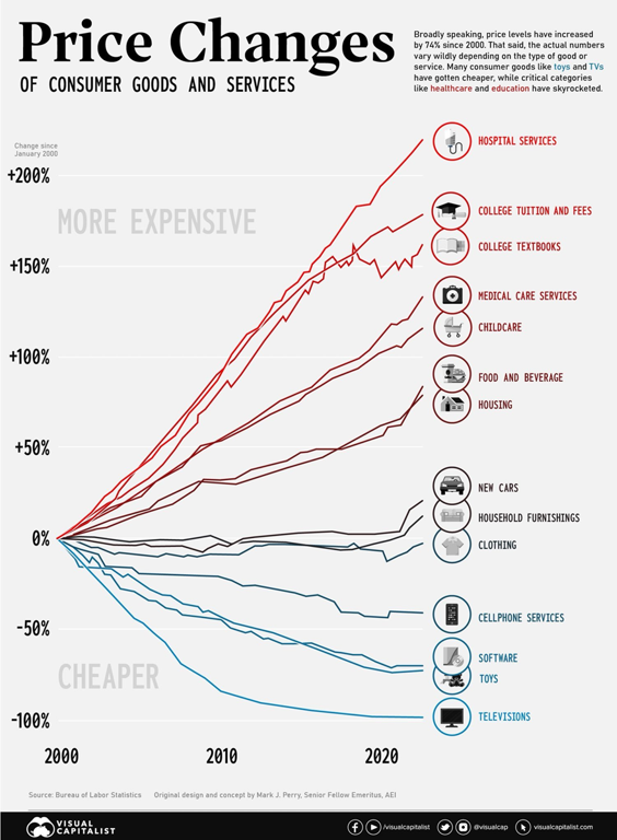 Mientras los servicios hospitalarios, la educación universitaria, las guarderías o la vivienda se han disparado entre un 70% y más de un 200%, categorías que antes se consideraban “lujosas” (televisores, software, juguetes, servicios de telefonía) se han abaratado entre un 50% y un 90%. El televisor que en los 80 era símbolo de estatus hoy vale menos que una cita rutinaria en un hospital. La educación, que antes era un ascensor social accesible, se ha convertido en una montaña imposible para millones de jóvenes. Y criar a un hijo cuesta más que nunca en términos reales.